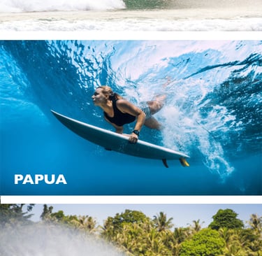 Raja Ampat archipelago is made up of 1,000 islands boasting a mix of steep hills, jungles, deserted white sandy beaches, hidden Surf breaks, caves, mushroom-shaped outcrops and clear turquoise water.