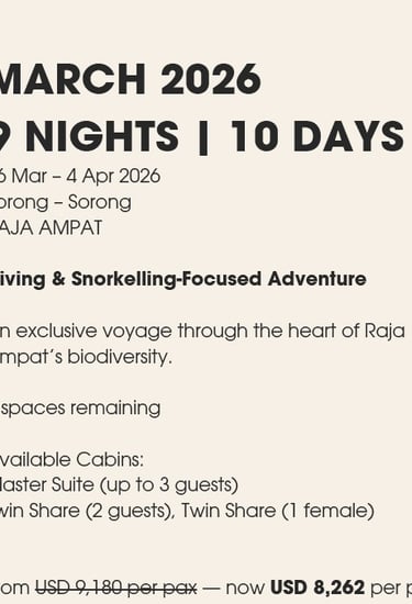 An unforgettable experience sailing through Kaimana and Raja Ampat on a stunning luxury yacht.